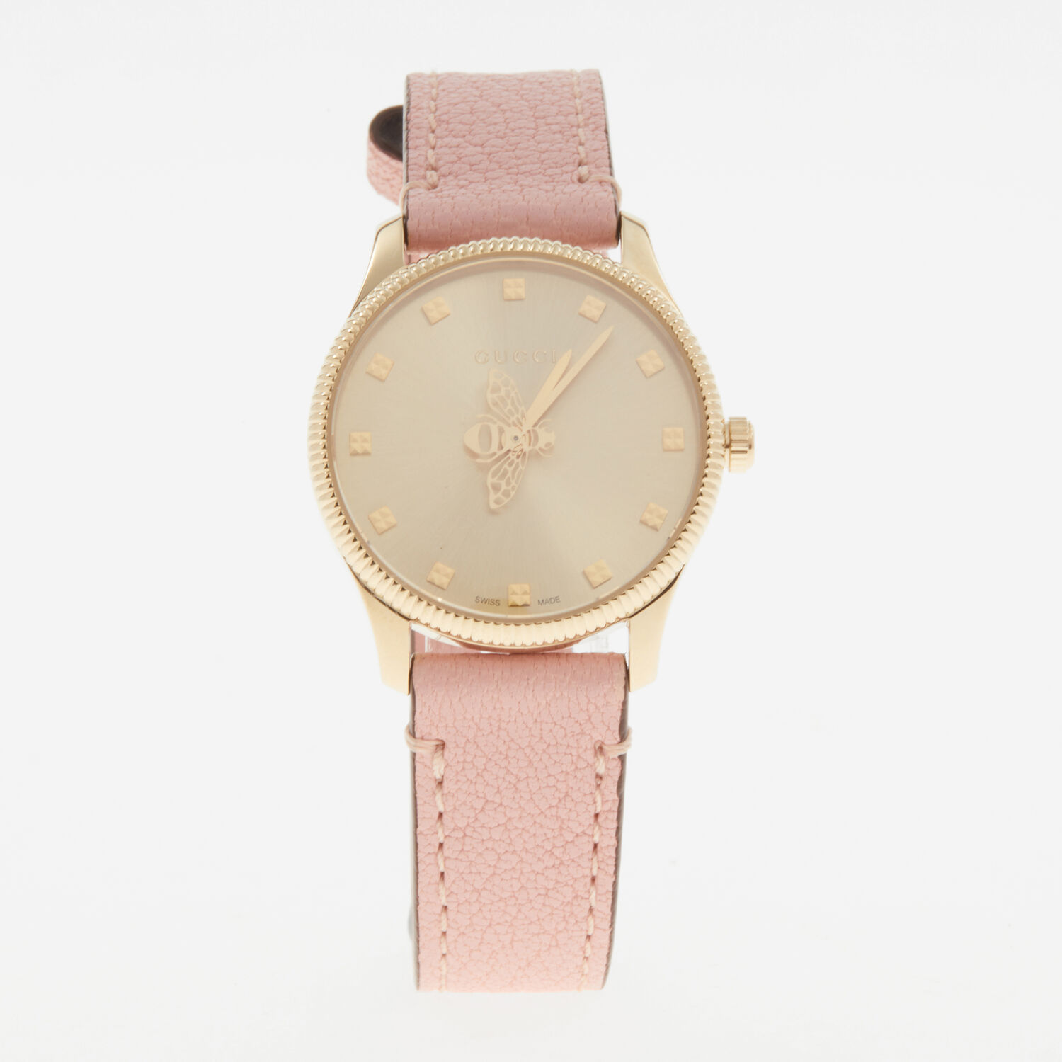Be the first to review “Gucci – Rosa-goldfarbene Armbanduhr mit Lederband”